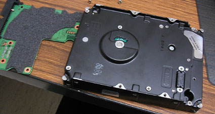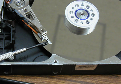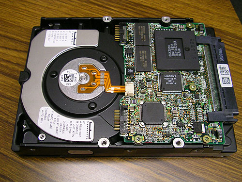 | さて、原因究明がこのページのテーマですね。ディスクを外して・・・と思いましたが、意外な壁にぶつかりました。 ディスクを固定している星型のビスが手持ちのドライバーと合わないので回せません。先にすすめませんです。 というわけで故障原因は・・・・ この状態、ディスクとヘッドの吸着がひどく、ディスクがかなり回転しにくくなっています。というより簡単に回すことができません。3本のヘッドも吸着力を増している要因。 これは今現在、回転を停止させているからか? 10000rpmになってからヘッドがロードしたらちゃんと動作するのかなぁ ちょっと不明。 吸着しやすいからLoad/Unload機構を採用しているのかもしれないし。 よくわかりませんでした。常時稼動しているサーバーなどのHDDをちょっと止めておくと動かなくなる事が多いのはこんなことが原因なのかなぁと、ふと思いました。 不完全レポートですいません。 |