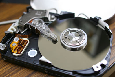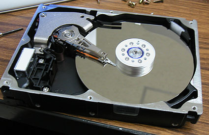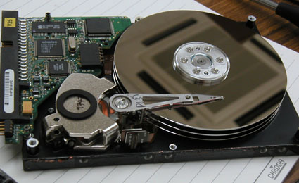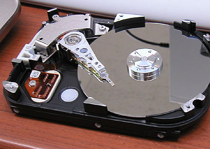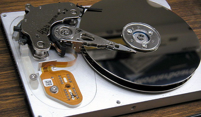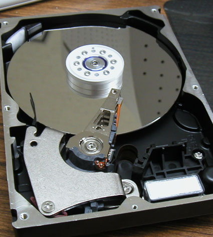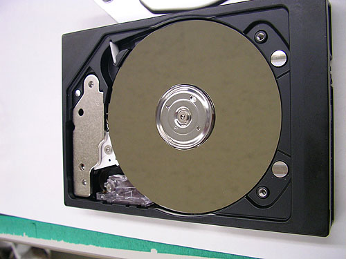 一枚ディスクです。 ちょっとみずらいけど片面のみ使用しています。 片面が使われてないからもったいない気はしますが、ヘッドの価格が一本だけになるのでコストが多少抑えられているのでしょう。 |