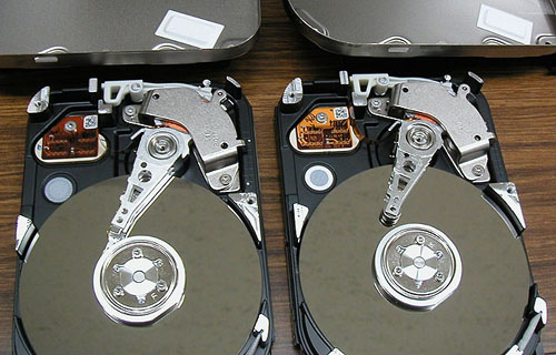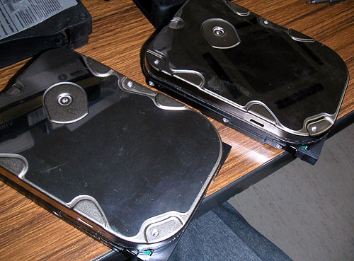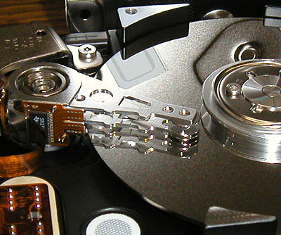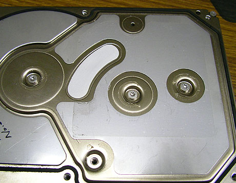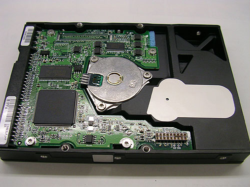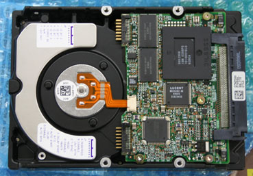 | さて、気持ちを入れ換えて、表のふたを開けます。 すごいですねー 40Gなのにたったの1枚だけでした。びっくり!!!! 複数枚使うのが普通ですけど、1枚とはたまげた。ヘッドも2組4本用だけど上側は殺してありますね。 |