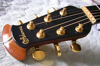 Ovationならではの形状です。Adamasって書いてあるんだね。