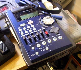 CFカードを使ったデジタルの4トラックMTR、マイクつきヘッドフォン付属。