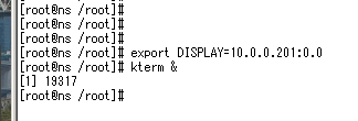 export DISPLAY=10.0.0.200:0.0 <----クライアントアドレスを指定して画面表示をそこへ