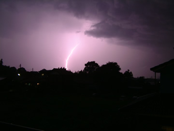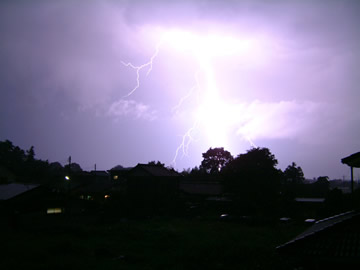 【いっぽーん】 2001.8.10 6900Zにて 数年ぶりに雷がすごくたくさん落ちているので、ベランダに出て、しばらくの間カメラを構えて撮影し続けました。 デジカメはシャッターラグが大きいので、フォーカシングを自動で行わないマニュアルフォーカスならではの写真です。 オリジナルサイズ325KB |