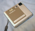 とてもコンパクト。MDプレイヤーみたい。薄型カメラの魁です。更に内装3倍ズーム搭載で光学式3倍であるにもかかわらずレンズの飛び出しは無いというとってもすばらしい構造です。211万画素です。画素数は充分です。 |