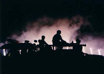 これがサンプルです。山頂の花火大会で非常事態に備えた消防団の人たちを写したモノです。ストロボを消してちょこちょこっと設定を変えて写すとこんなのも撮れます。後ろに花火も見えますね。どうですか。結構気に入っている写真です。